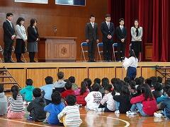 ↑ 新しい先生方を、身を乗り出しながら拍手で迎える子ども達がたくさんいました。
