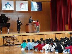 次に、代表の5年生2人が7名の先生方へお礼の言葉を伝えました。