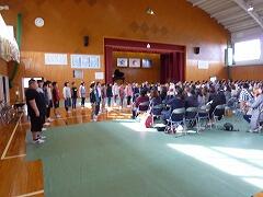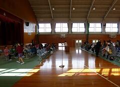 まず、体育館で「6年生をおくる集い」を行いました。
