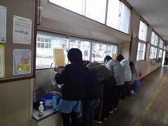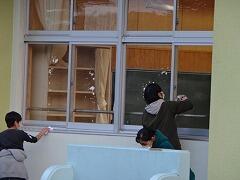 窓を拭きながら、保護者の方が登校班の高学年の子と「よろしくね。」と話をする様子も見られ、よいコミュニケーションの機会でもあるんだなと感じました。