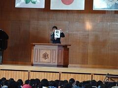 そして、2つ目は、2学期の「きたえる」に続いて、亥年の3学期はイノシシのように前進していこうということで「前へ」でした。