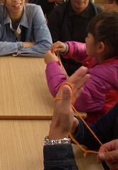 今回は、「こま」「けん玉」「おはじき」「お手玉」「あやとり」の遊びを行いました。