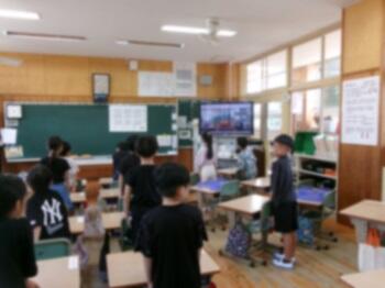 始業式はオンラインで実施しましたが、「おはようございます」のあいさつも、校歌の斉唱も校長室にまで大きく元気な声が届きました。
