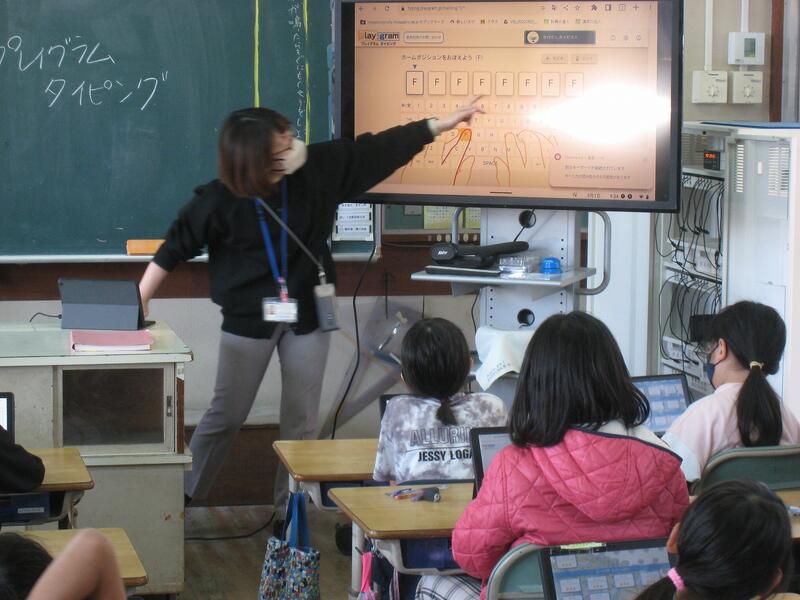 この日は、動画を撮ったあと、ICT支援員の山香(やまが)先生に、キーボード入力について習いました。2年生までは手書き入力でしたので、子どもたちのスキルアップを図ります。