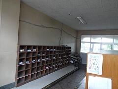 ↑ 下足室前も小中学生合同で、登校する子を待ちます。