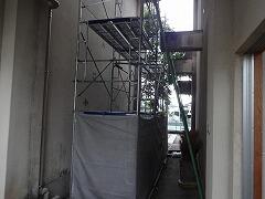 ↑ 校舎の外側には修繕作業のための足場も組まれていました。