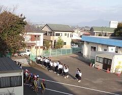 ↑ 正門付近。早い時間は、中学生だけであいさつ運動。
