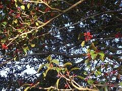 ↑ 運動場北のモチノキには、赤い実がたくさん実っています。