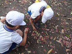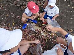 子ども達は、葉の大きさや色、触った感じなどいろいろと観察をしました。