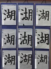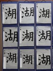6年生の一回目の書写では、毛筆で「湖」を書きました。