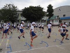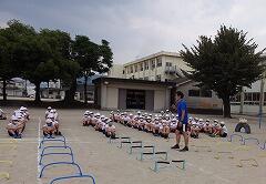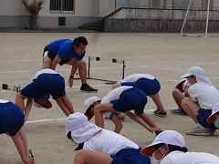 5/29(金)の6年の体育では、教頭先生にハードル走の練習を指導してもらいました。