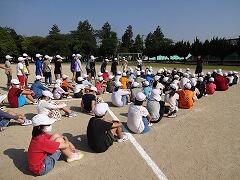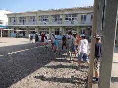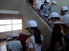 そこで、学年ごとに運動場への避難経路を実際に移動して確認しました。