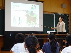 大王小学校の場所が、旧石器時代の頃は大きな湖の中にあったことや、都城で見つかった古墳や水田跡など、いろいろなことを教えてもらいました。