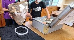 中には、古墳時代の女性の頭蓋骨もあり、子ども達は驚きながら 自分の頭を触って古代の人との違いを確かめていました。