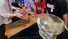 子ども達は、大昔の都城の様子を知ったり、いろいろな道具を触ったりできて、これから学ぶ歴史の学習に興味を持つことができたようでした。