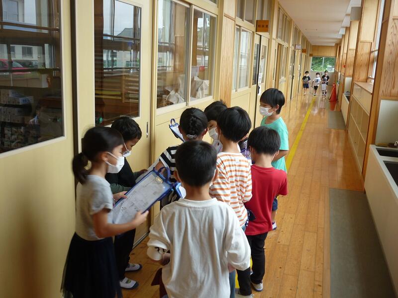 5、6人で1グループをつくり、大王小学校の校舎内を探検していきました。