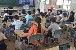 タブレットPCを使っての授業は、教師も子どもたちもまだ慣れていないのでトラブルはつきものですが、とにかく使いながら、よりよい使い方を探っていっているところです。
