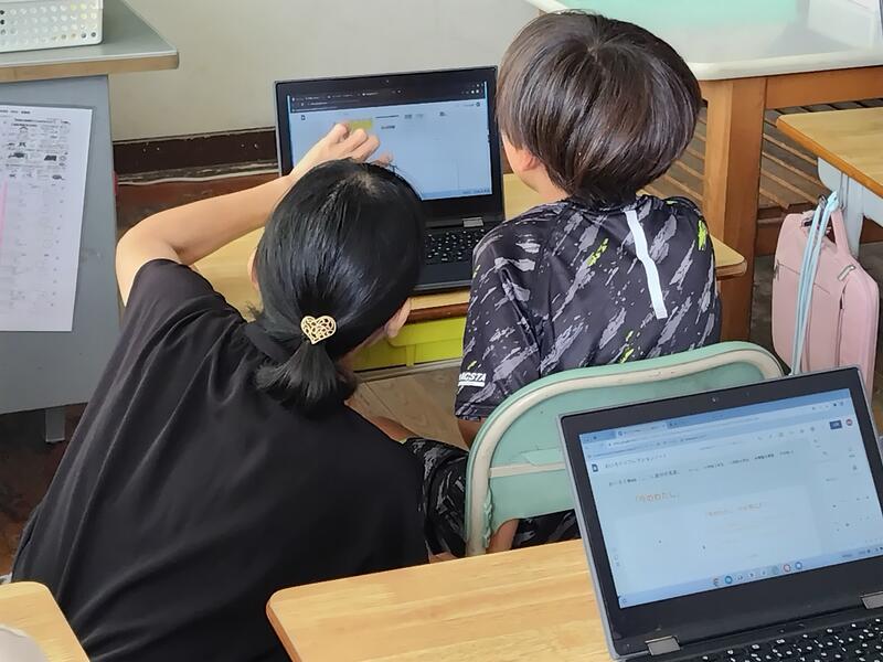 担任だけでは手が回らないこともあるので、本校に配置されている市ICT支援員の力を借りました。