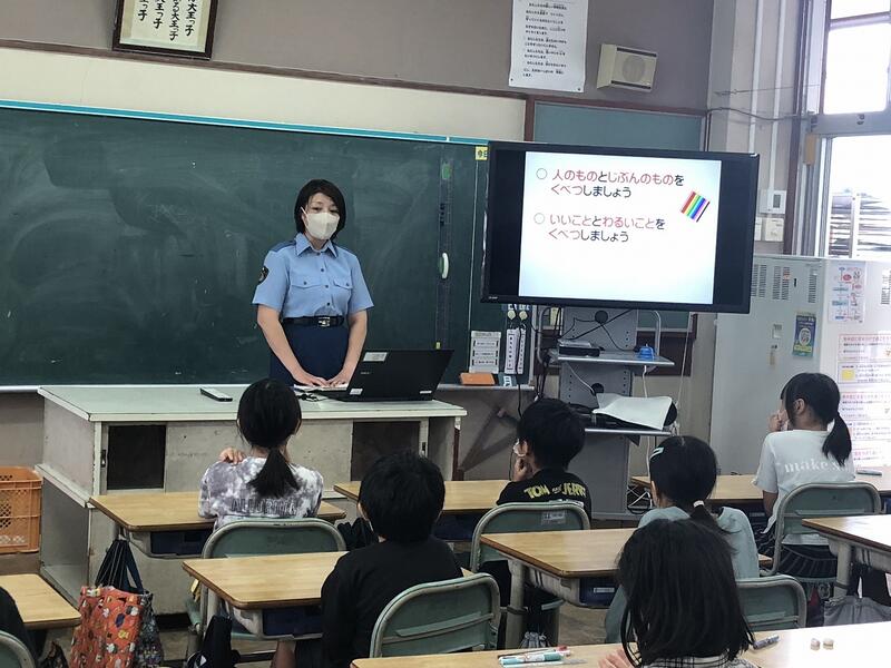 3年生の内容は万引き等防止です。子どもであっても絶対法律を守らなければなりません。万引きや盗みは犯罪です。お店の物はもちろん、他の人の物も盗ってはいけません。3年生はこの学習を通して、固く心に誓ったと思います。