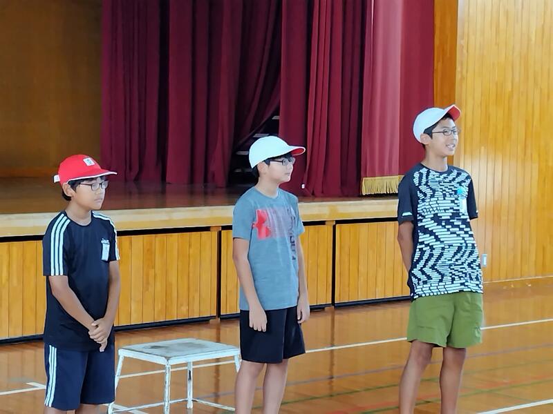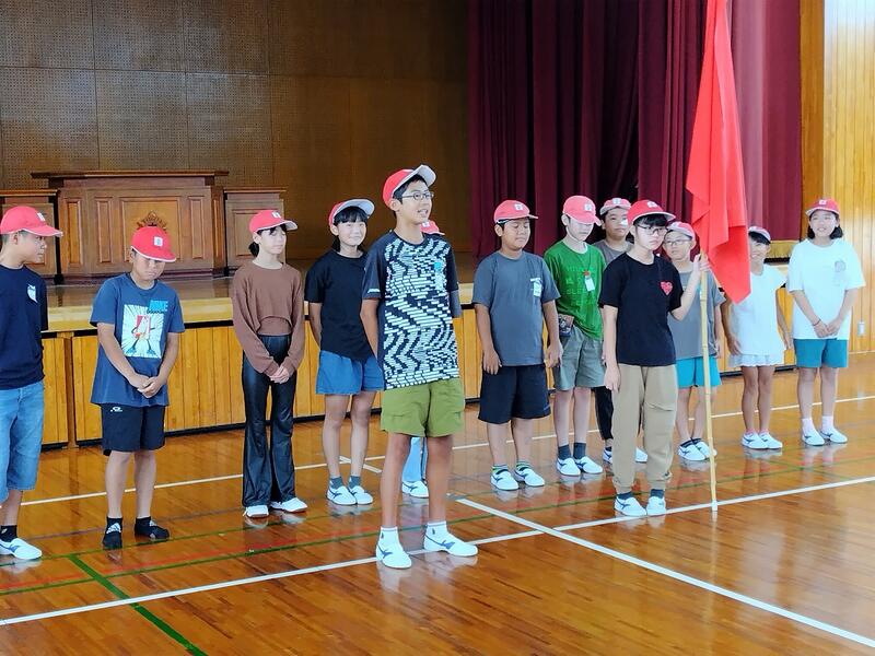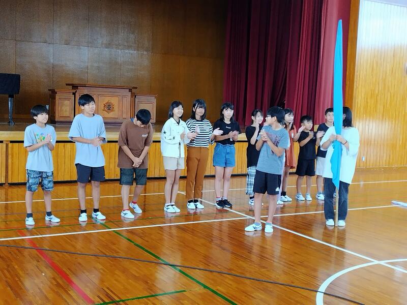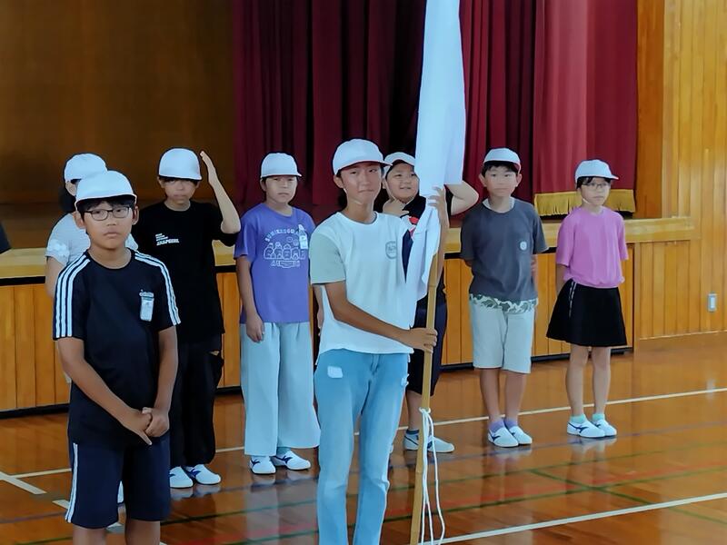天候が心配されたため、6年生は体育館で、他の学年は各教室で、体育館から配信して実施しました。