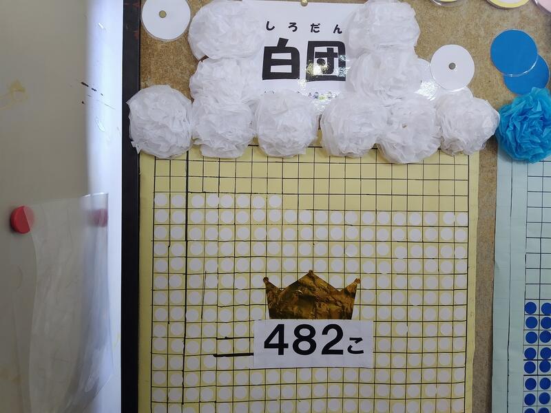 白団、青団、赤団になった学級ごとに、図書館の本を借りて読んだら、自分の団の所にシールを貼っていき、読書量を増やそうというイベントです。