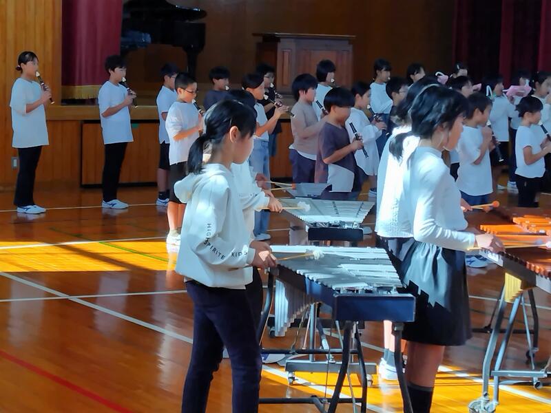 4年生は、11月14日(火)の都北小中学校音楽大会に出場します。その時に演奏する曲を全校児童に披露しました。