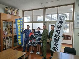 都城駐屯地曹友会と鹿児島音響測定所より、チャリティ活動からの車椅子贈呈がありました。