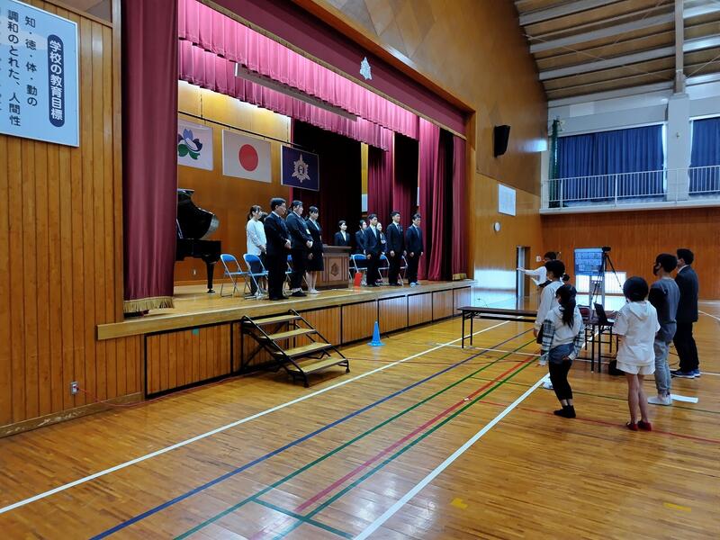 5・6年生が体育館で、他の学年の児童は各教室でオンラインで式に参加しました。(コロナの状況を見て全校児童が集まって実施するか検討します。)