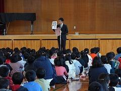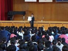 優秀な作品や運動などでよい成績をとった子ども達が、全校の前で表彰されました。