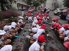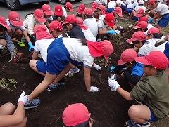芋掘りをする前に、学年主任の先生から「サツマイモが、土の中でどんな風に育っているのかが分かるように掘ろう。」と話がありました。