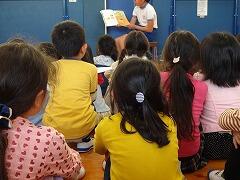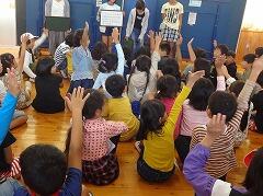 絵本を読みながらクイズも出されて、指名された高学年の子が正解を出すと大盛り上がりでした。