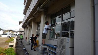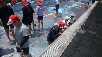 もうお分かりですね。プール掃除です。いよいよ、来週はプール開きです。そのために最上級生の6年生がプール掃除をしてくれたんですね。