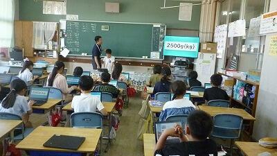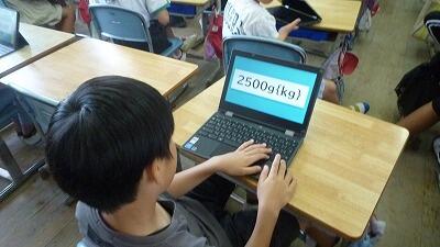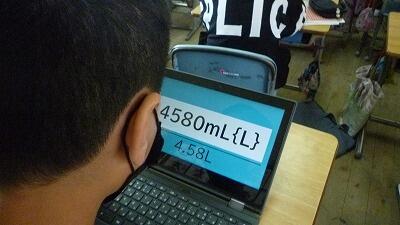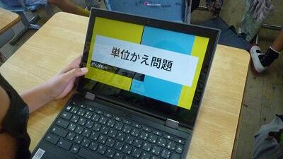 これは4年生が単位換算の練習でフラッシュカードを使っていました。