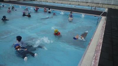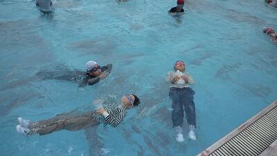 ラッコスタイルで上手に浮いていますね。夏休みにも泳ぐ機会があるかもしれません。悲しいですが水難事故のニュースもよく耳にします。今日は命を守るための学習でした。