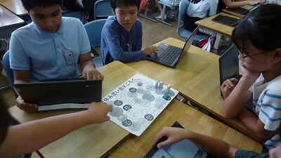 一生懸命に他者参照しています。限られた時間でたくさんの友達の考えにふれています。意見交流により自分の考えを深めていますね。
