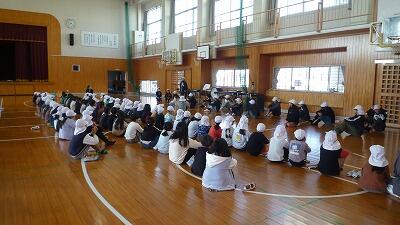 本校では全校朝会の時間にいのちについてのお話、担当の先生からの標語つくりのお話がありました。