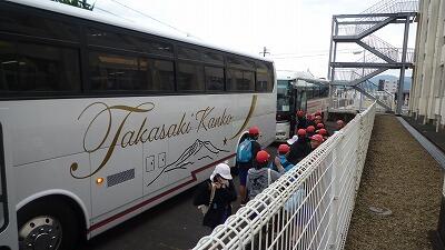 さあ!がんばるぞ!バスに乗り込む前には運動場でバトンパスの練習を行っていました。自主練だそうです。気合いが入っています。ん?バス?