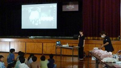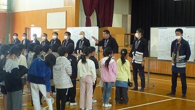 先生が子供たちにお話をしていますが、いつもと少し違うようです。近くで見てみると・・・