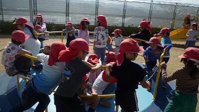 1年生は山之口の陸上競技場内の遊具で思い切り遊んでいましたよ。どこかしこで大歓声が起こっていました。