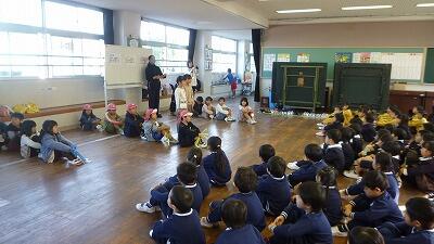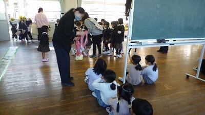 1年生も久しぶりの園の先生との再会に緊張とともに、成長した姿を見せようと張り切っていましたよ。園の先生方も子どもたちの成長に目を細めてらっしゃいました。