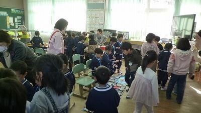 多目的室に人だかりができていました。1年生がお出迎えしているようです。