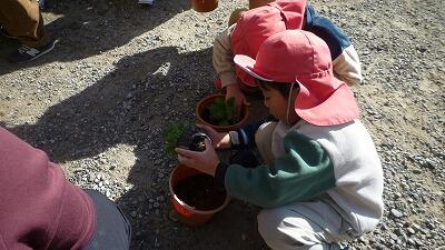 先日植えた一人一鉢も寒さに耐えながら、きれいな花を咲かせるために頑張っています。もちろん、子供たちはお世話を頑張っています。