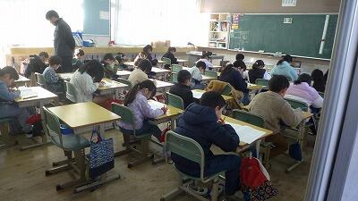低学年の教室です。1年生は初めての検査ですが、集中していますね。明日の算数も頑張るでしょう。