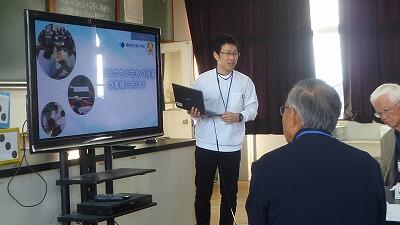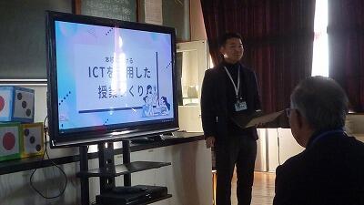 説明は本校の情報主任が行いました。こちらも写真や動画を見ていただきながら、なぜこのような活用を図っているのか説明させていただきました。