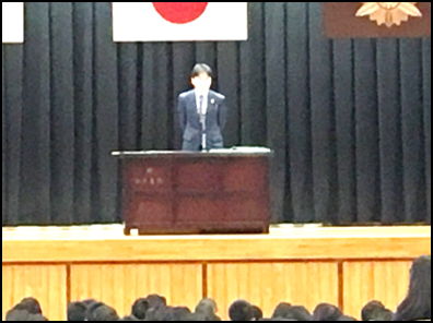 まず校長先生から、上杉鷹山の「為せば成る為さねば成らぬ何事も成らぬは人の為さぬなりけり」という名言をもとに、嫌なことから逃げてはいけないというお話がありました。