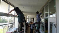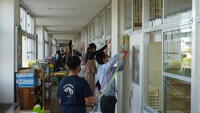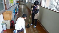 雨だと校舎内の廊下や階段を掃いている子どもたちの姿が毎日、見られます。