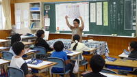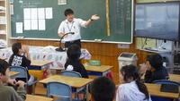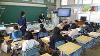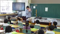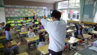 理科では、主幹教諭の嶽野先生が、初めて授業する5年生に理科のオリエンテーションをクイズ形式でしていました。