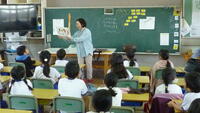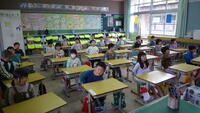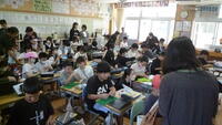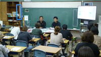 初めての日曜参観日ということもあり、多くの保護者が子どもの授業の様子を参観していました。