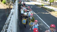 各登校班の班長が、自分の登校班の1年生を迎えに行き、各地区の集合場所まで連れて行っていました。