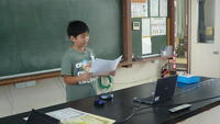 外国語のオリエンテーション及び自己紹介をプレゼンを使って、クイズ形式で進めていました。
